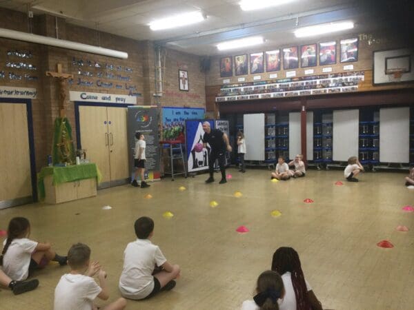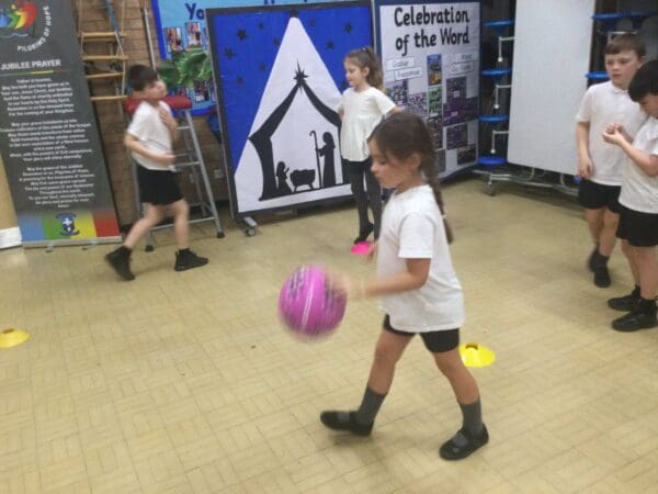 Year 3 PE. Year 3 children have been learning the skill of how to control a ball. Dribbling and passing was the learning objective today.
